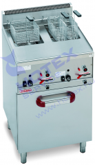 Rozsdamentes acél burkolat, lecsepegtető állvány, nyitott alsó szekrény szintezhető lábakkal, üzemi és biztonsági termosztátok, földgáz vagy propán-bután gáz üzem, . Tartozékok medencénként: fedő, biztonsági olajleeresztő csap levehető kifolyócsővel. Opcionális tartozékok: klf. méretű kosarak, szárnyas ajtó(k)
