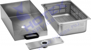 CL, vagy CB állványba építhető készlet alsó kifolyócsonkkal. A készlet beszerzésével a szokásos épített tálca szükségtelen.